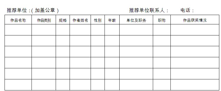 注:此表由推荐单位填写。推荐单位指:各市(地、系统)党委宣传部或省直文艺创作生产研究单位或省级各文学艺术专业协会、高校党委宣传部。