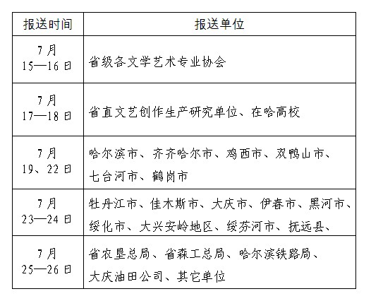 第八届“黑龙江省文艺奖”申报作品报送时间表