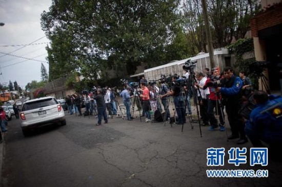 4月17日,在墨西哥首都墨西哥城,媒体记者守候在马尔克斯的住宅外。当日,哥伦比亚著名作家、1982年诺贝尔文学奖得主加西亚·马尔克斯在墨西哥首都墨西哥城因病去世,享年87岁。新华社发(佩德罗·梅拉摄)
