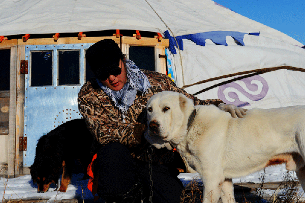 2013年9月,他自费在呼伦贝尔草原上建起了蒙古牧羊犬繁育基地,他把繁育出的幼犬无偿送给牧民。