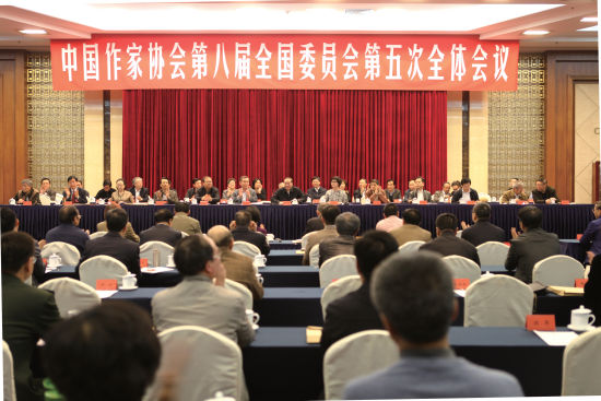 中国作家协会第八届全国委员会第五次全体会议3月26日至27日在北京召开。会议深入学习贯彻习近平总书记在文艺工作座谈会上的重要讲话精神, 回顾总结中国作协2014年工作,研究部署中国作协2015年工作。中宣部常务副部长黄坤明出席会议并讲话。中国作协主席铁凝主持会议。中国作协党组书 记、副主席钱小芊作工作报告。