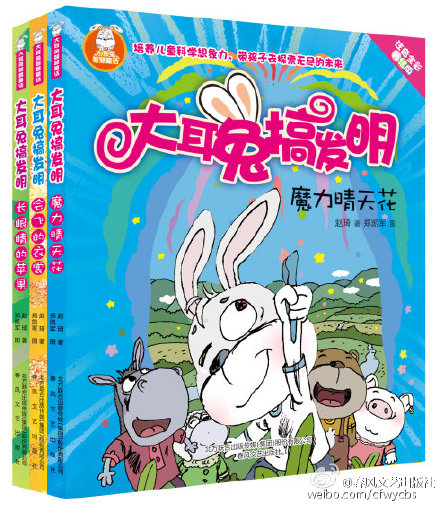 《大耳兔搞发明》童话集包括《魔力晴天花》、《长眼睛的苹果》、《会飞的衣裳》等,该系列童话主题阳光,充满爱心,活泼有趣,想象力丰富。据了解,大耳兔系列已在北京、上海、广州等地主要书店开始发售。
