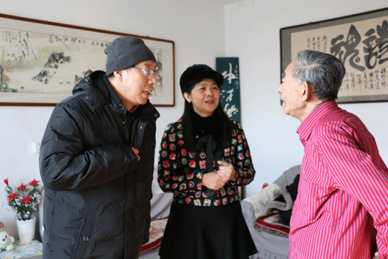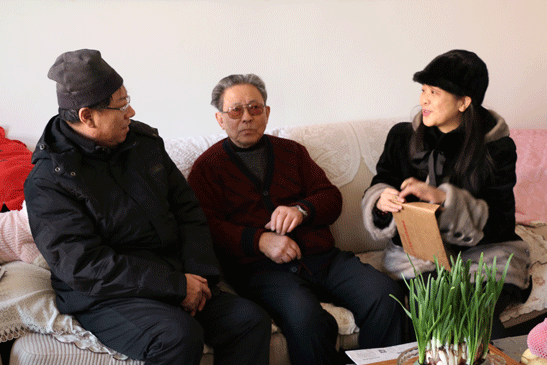 1月29日,在2016年新春佳节来临之际,按照中组部关于元旦、春节期间走访老党员、老干部的通知和省委办公厅省办发电(2015)53号文件精神,省作协主席迟子建,党组成员、副主席司兆国,党组成员、秘书长李滨庆等领导走访慰问了王忠瑜、中流、黃益庸、郭先红、李军等老作家,带去了作协对老作家的关怀,并致以新春的诚挚问候和美好祝愿。