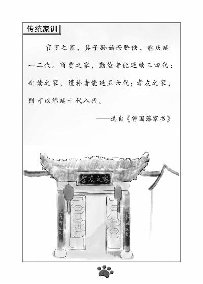 国学单元中,则有孔子、孟子等的经典。分论学习、论君子、论仁爱、论人性等10个主题。例如论君子中,有“君子食无求饱,居无求安,敏于事而慎于言”;论适度中,则有孟子的“可以取,可以无取,取伤廉”等。