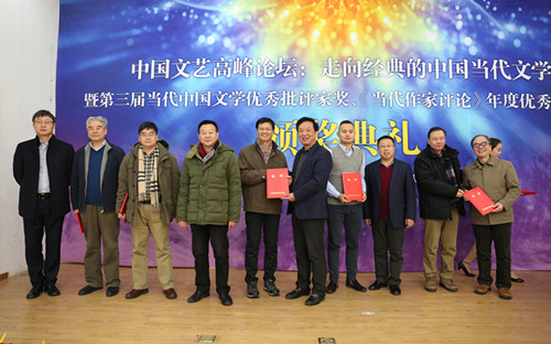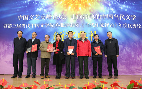 12月10日,由《当代作家评论》杂志社、东北大学艺术学院主办的“中国文艺高峰论坛:走向经典的中国当代文学——暨第三届当代中国文学优秀批评家奖、《当代作家评论》年度优秀论文奖”颁奖典礼在沈阳举行,来自全国各地的20余位作家、批评家参加了活动。