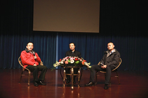 柳建伟(左)、周大新(中)、傅逸尘(右)《军旅文艺:和平年代的英雄主义叙事》主题讲座