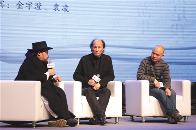 2017“新京报·腾讯”年度好书现场论坛,从左至右分别为史航、金宇澄、袁凌。