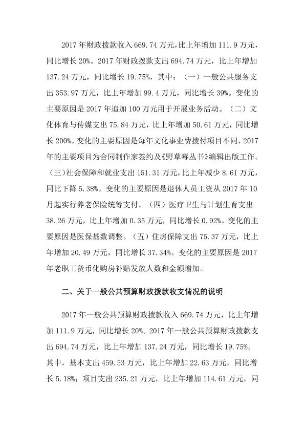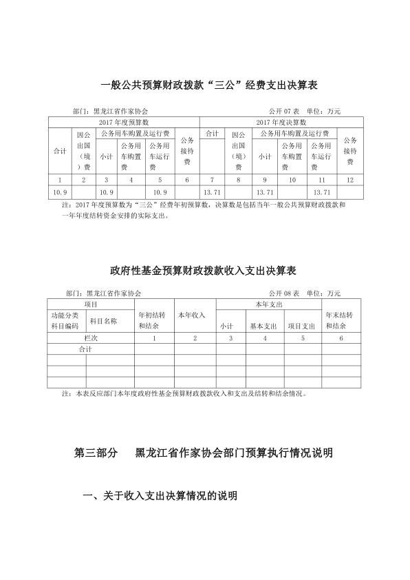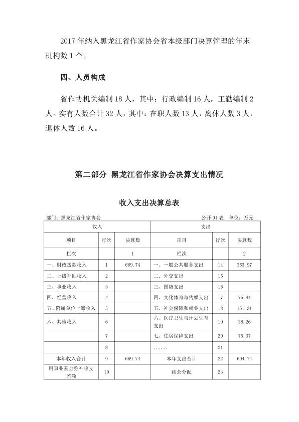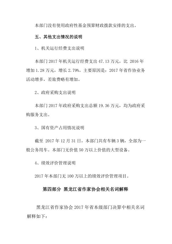 黑龙江省作家协会 2017 年度部门决算公开及有关情况说明