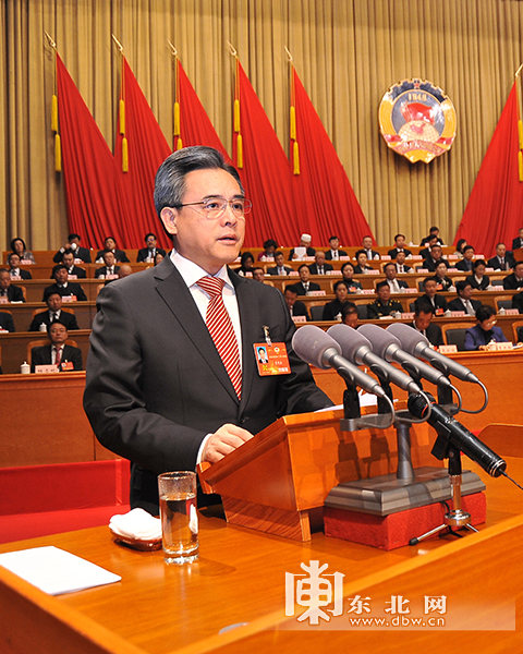 宫晶堃代表政协黑龙江省第十二届委员会常务委员会,向大会作关于省政协十二届二次会议以来提案工作情况的报告。