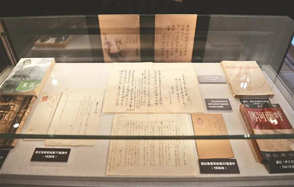 在黑龙江文学史上,萧红绝对是浓墨重彩的篇章;在黑龙江文学馆内,萧红展区自然也是重中之重。茅盾将萧红的《呼兰河传》称作是一篇叙事诗,一幅多彩的风景画,一串凄婉的歌谣。漫游至萧红萧军的书房展区,以《呼兰河传》故事背景创作的场景雕塑置于其中,再现了小说中的祖父、小萧红、冯歪嘴子、两个小孩儿和小团圆媳妇等经典的人物。这里存放着文学馆的镇馆之宝——萧红于1936年旅日期间致萧军的第17封、第33封信的原件。透过玻璃展柜参观者还可以看到萧军的手稿、1947年出版的初版书《呼兰河传》和萧军萧红合著的小说集《跋涉》等。