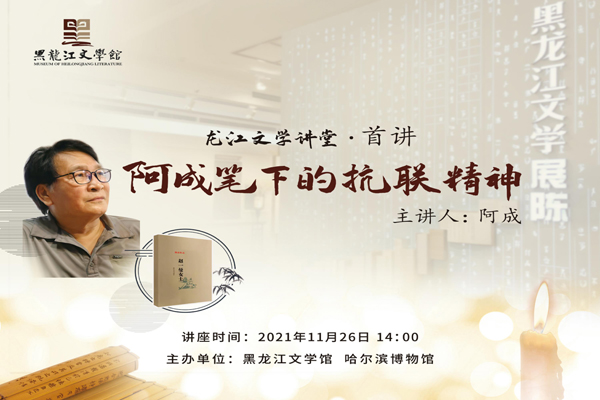 11月26日,由黑龙江文学馆、哈尔滨博物馆主办的“龙江文学讲堂”在黑龙江文学馆启动,著名作家阿成担任首讲主讲人,以鲁迅文学奖获奖作品《赵一曼女士》为例,讲述文学作品中的抗联精神。黑龙江省政协副主席、省作家协会主席迟子建出席活动并致辞。