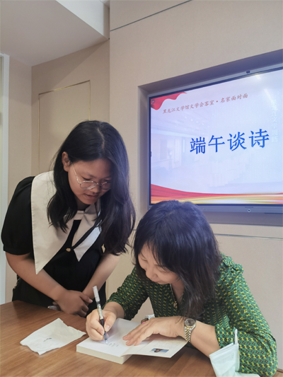 作为龙江公共文化服务新平台,黑龙江文学馆充分利用场地优势及团结广大文学爱好者的职能,举办“名家面对面——端午谈诗”活动,就是为了给诗人和读者搭建沟通交流的平台。活动举办期间,既有创作实绩丰厚的实力派作家、媒体出版界的专家,也有初登诗坛的青年诗人,更有从外地远道而来的文学爱好者及来自天津、浙江等地的文学馆观众参与活动。诗歌因交流而绚丽,文学因互融而丰富。活动现场,思想与语言碰撞,现实与艺术融合,大家共同在文学的场域里畅所欲言,与诗结缘。