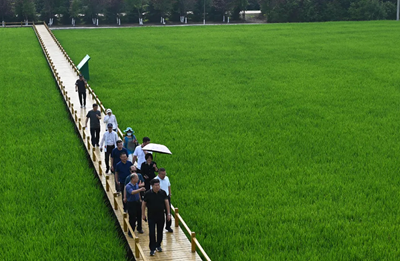 炎炎烈日,稻海荡漾。采风团来到庆阳农场,通过听取介绍、现场交流等方式,先后参观了农场黑稻种植示范基地、黑稻种子繁育基地、毛木耳产业等,详细了解了农场丰富的历史文化和独特地理位置。无论是俯瞰栩栩如生的稻田画,还是近触傲然屹立的黑稻田,无论是忙碌的黑稻生产线,还是在风雨中静默的文化长廊,都让人流连忘返。