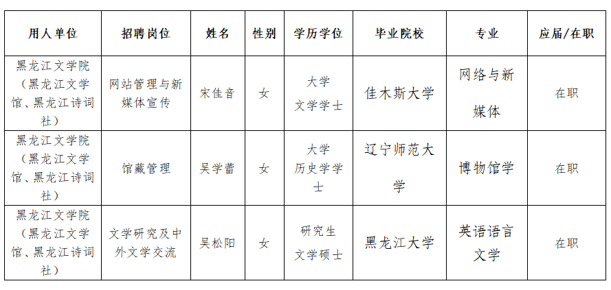 黑龙江省作家协会所属事业单位2024年上半年公开招聘拟聘用人员公示