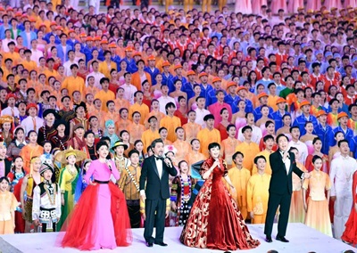 2024年9月29日晚,人民大会堂万人大礼堂华灯璀璨、气氛喜庆。习近平等党和国家领导人同3000多名观众一起观看庆祝中华人民共和国成立75周年音乐会,共贺新中国华诞。