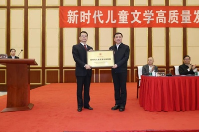 张宏森为中国作家协会新时代儿童文学出版联盟授牌。曾锐接牌,并宣读联盟倡议书。
