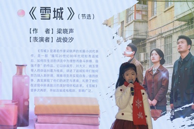 青少年朗诵者们依次登台,演绎了萧红《呼兰河传》、林予《雁飞塞北》、梁晓声《雪城》、曲波《林海雪原》、迟子建《额尔古纳河右岸》、张雅文《永不言败》、黑鹤《驯鹿六季》等经典片段,以及李琦、张曙光、包临轩、全勇先、桑克等作家的冰雪诗篇,以真挚情感诠释了冰雪文学的独特魅力。活动现场还穿插了弦乐二重奏《如愿》,琴声流淌中,文学与音乐交织,情感层层升华。