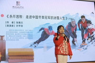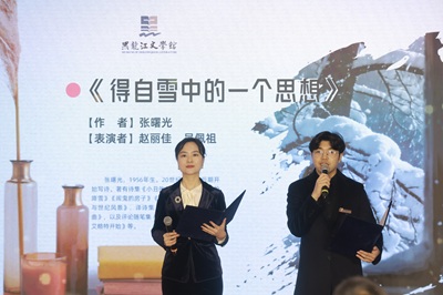 本届冰雪文学周自1月20日启动以来,全省各地陆续开展了冰雪主题文学研讨、采风等多项活动,让文学深度融入冰雪产业、冰雪经济,以文化赋能龙江振兴发展。此次诗文朗诵会通过“文学+朗诵+音乐+情景表演”的融合形式,在冰雪文学与公众,特别是青少年之间搭建了桥梁,让浸润着冰雪气息的文字在青春之声中焕发新生,为全省火热开展的冰雪文学活动注入了鲜活的青春力量。
