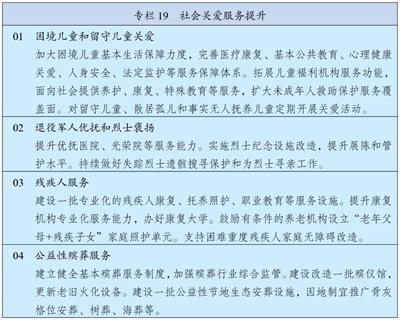 完善残疾人社会保障制度和关爱服务体系,促进残疾人事业全面发展。强化对重度残疾、多重残疾、一户多残等群体兜底保障,健全困难残疾人生活补贴、重度残疾人护理补贴制度及补贴标准动态调整机制,加强残疾儿童康复救助,健全残疾人辅助器具适配补贴制度。完善残疾人社区和家庭支持,加强重度残疾人托养照护,发展精神障碍社区康复。强化残疾人就业帮扶,完善按比例就业、集中就业、自主就业促进机制。发展残疾人文化体育。深入推进科技助残,加强公共设施、信息交流、社会服务无障碍环境建设。