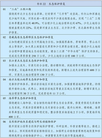 统筹推进重要生态系统保护和修复重大工程,持续巩固以“三区四带”为骨架的国家生态安全屏障体系。打好“三北”工程攻坚战,推动三大标志性战役取得决定性胜利。深入推进青藏高原生态保护,加强重点区域水土流失治理和石漠化治理。科学开展大规模国土绿化行动,推进森林质量精准提升和国家储备林建设,森林蓄积量达到224亿立方米,统筹草原生态修复与合理利用,加强湿地保护修复。推进超引地表水和超采地下水治理,开展历史遗留废弃矿山生态修复。